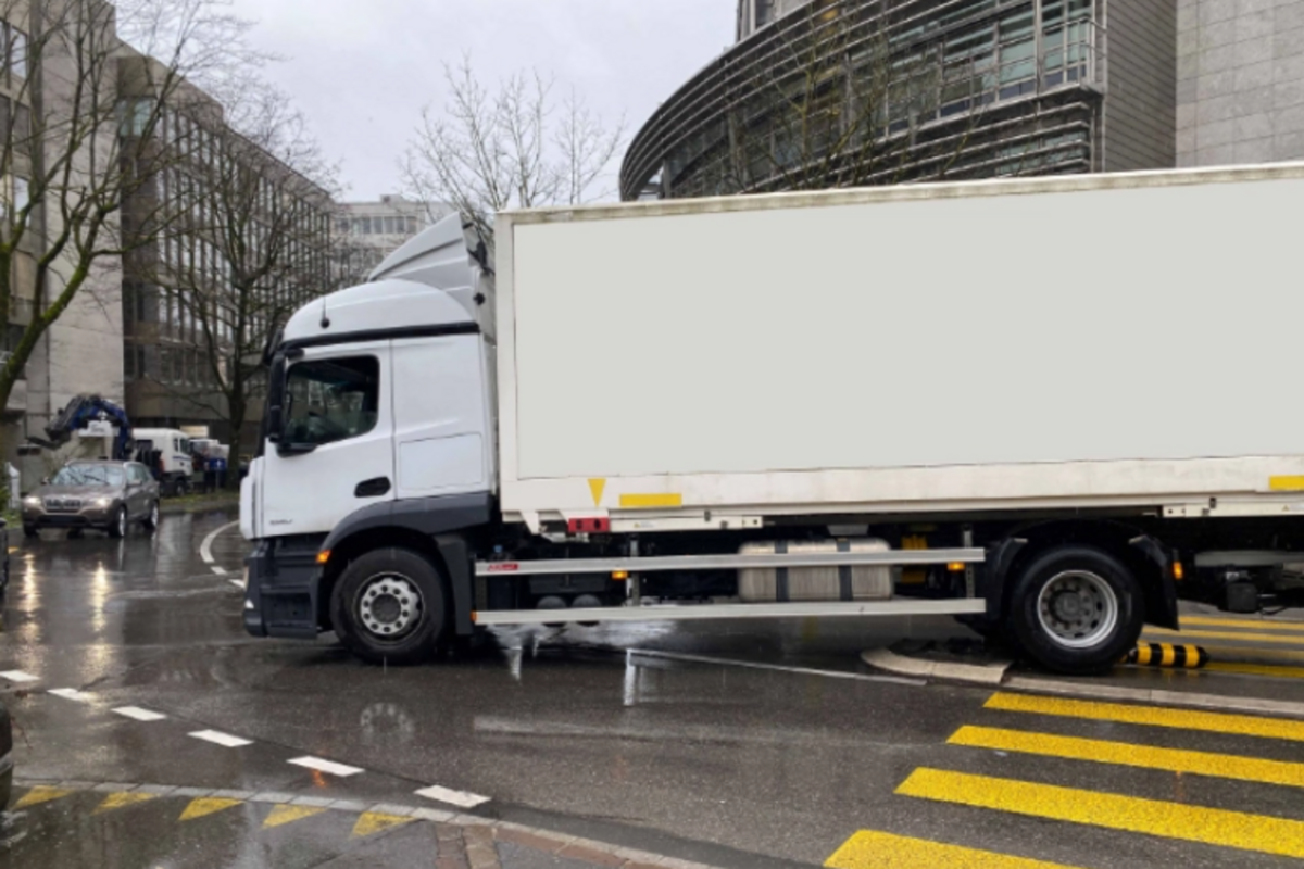 Durch den Betonsockel wurde die Hinterachse des Zugfahrzeugs blockiert. Dadurch war der Lastwagen nicht mehr fahrbar.