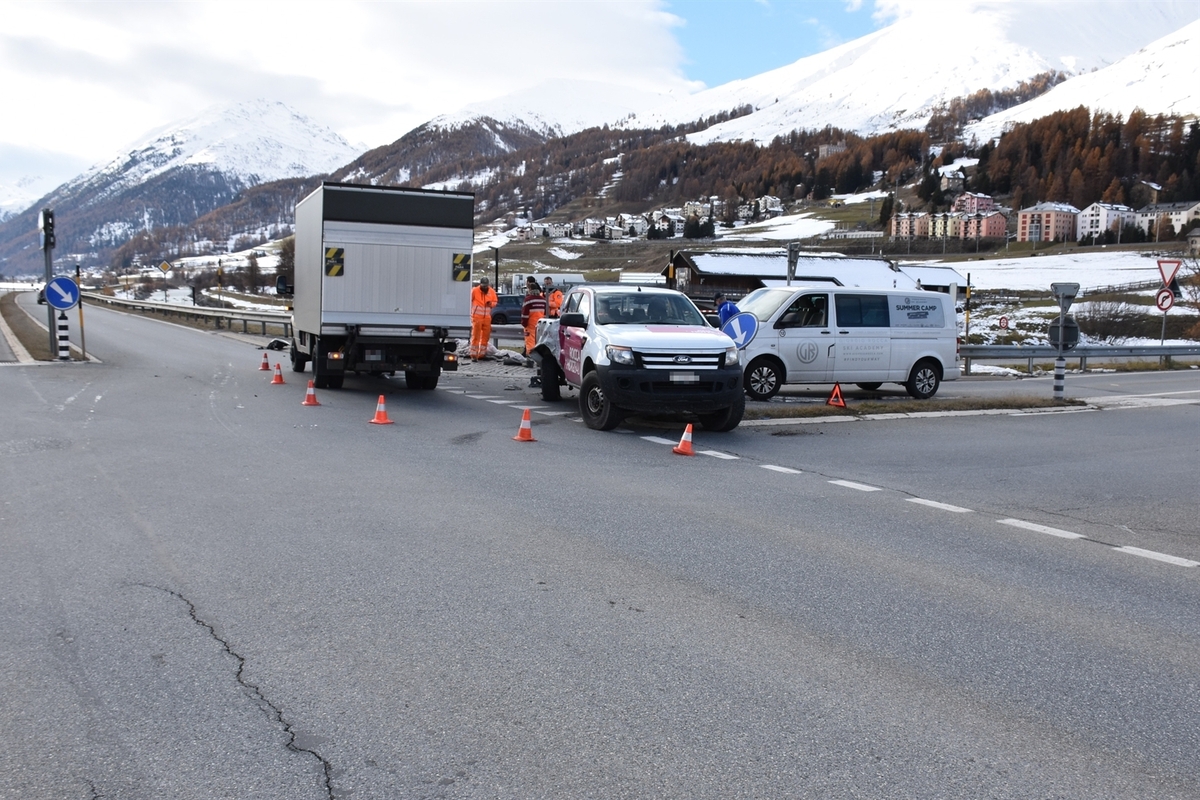 Der in Richtung Zuoz fahrende Lieferwagen wurde in einen stehenden Kleinbus geschleudert. Die beiden verletzten Lenker der Lieferwagen mussten in Spitalpflege gebracht werden. Im Einsatz standen die Rettung Oberengadin, eine Patrouille der Militärpolizei für die Verkehrsregelung, ein Abschleppdienst, das Tiefbauamt und die Kantonspolizei Graubünden.