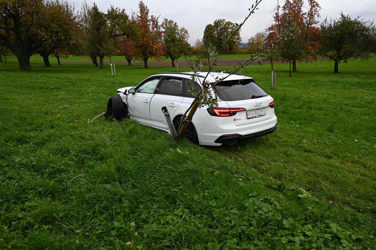 Nach der Kollision kam das Auto des Mannes von der Strasse ab, prallte gegen einen Baum und kam im angrenzenden Wiesland zum Stillstand. Sowohl der Autofahrer als auch die Autofahrerin wurden durch den Unfall eher leicht verletzt.