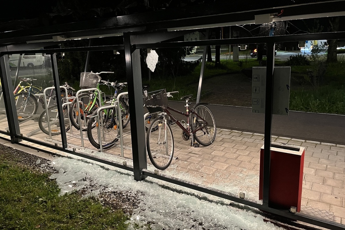 Ebenfalls zwei Scheiben wurden beim Fahrradunterstand nördliche der Gemeindeverwaltung eingeschlagen.