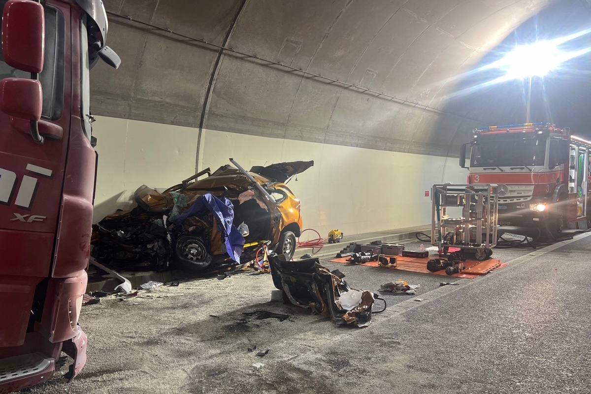 Der Lastwagen überquerte nach der Kollision die Gegenfahrbahn und prallte in ein weiteres entgegenkommendes Auto eines 67-jährigen Mannes und seiner 73-jährigen Beifahrerin. Das Auto wurde gegen die Tunnelwand gedrückt und vom Lastwagen mehrere Meter mitgezogen.