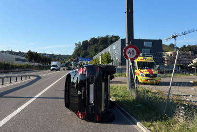 Am Samstagmorgen kollidierte der Fahrer eines Kleintransporters mit seinem Fahrzeug gegen eine Stützmauer. Das Fahrzeug kippte dadurch auf die Seite und lag quer über beide Fahrbahnen. Der Fahrer erli...