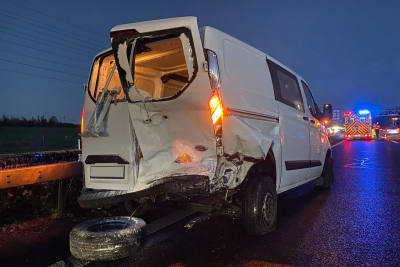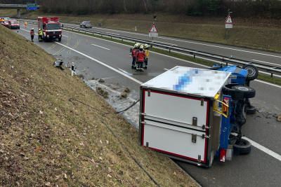 Am Donnerstag, 20. November 2025, kam es auf der A7 bei Kemmental zu einem Unfall. Ein Lieferwagenfahrer verlor die Kontrolle über das Fahrzeug. Der Lieferwagen kippte. Es entstand hoher Sachschaden.