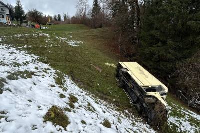 In Vorderthal ist am Dienstagvormittag ein Lieferwagen rund 200 Meter einen Abhang hinuntergerutscht.
