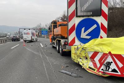 Ein Lieferwagenfahrer war während der Fahrt nicht konzentriert und kollidierte mit einem Baustellensicherungsfahrzeug des Strassenunterhalts. Verletzt wurde niemand.