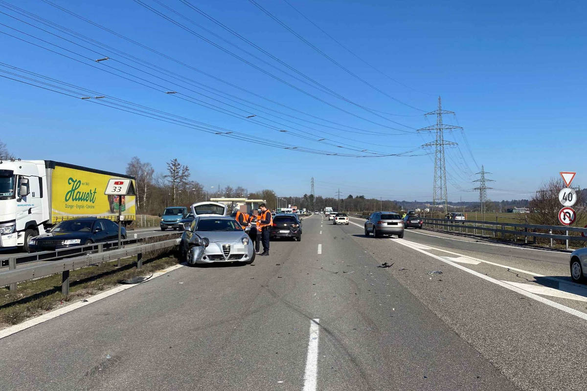 Auf der Autobahn A1 kam es am Freitagmittag zu einer Auffahrkollision mit insgesamt vier Fahrzeugen. Eine Person wurde leicht verletzt. Die Autobahn in Richtung Zürich musste kurzzeitig gesperrt werden.