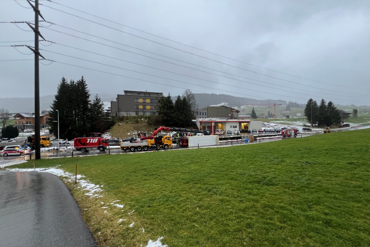 Dort blockierte der seitlich auf der Strasse liegende Lastwagen die Fahrbahn. Die Strasse musste von der Sützpunktfeuerwehr Appenzell während rund 2 1/2 Stunden gesperrt werden, weshalb eine grossräumige Umleitung organisiert wurde. Zur Fahrzeugbergung wurden zwei Spezialkranwagen aufgeboten. Weiter war der Pikettdienst vom Amt für Umwelt im Einsatz.