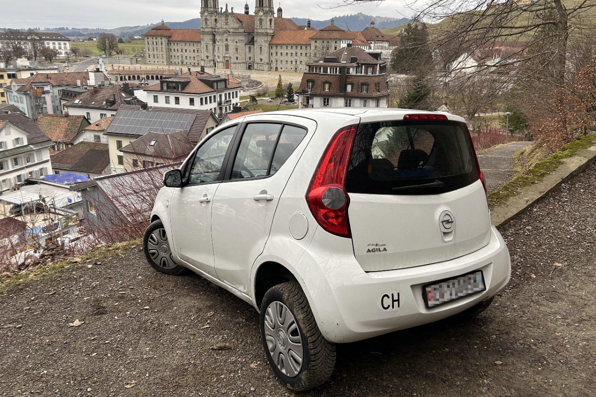 Am heutigen Donnerstagmorgen, 1. Februar 2024, blieb ein Autofahrer um 08.10 Uhr auf dem Stationenweg des Klosters Einsiedeln stecken