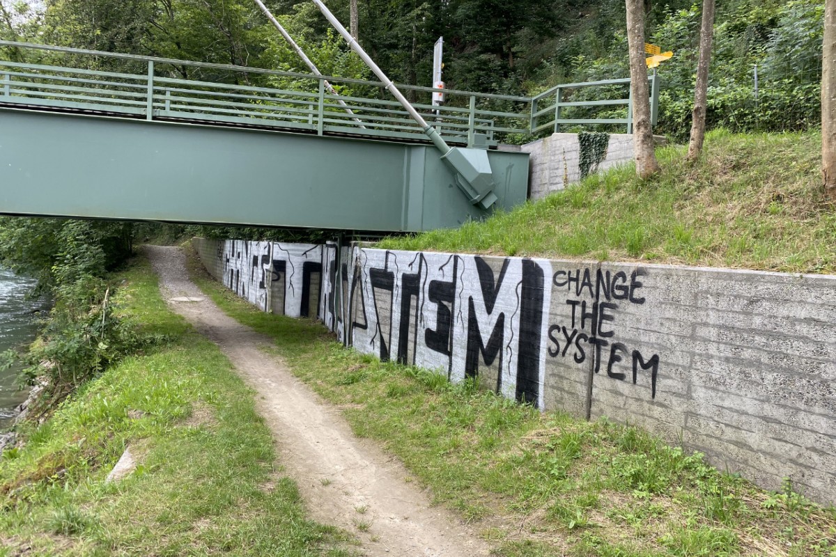 Stützmauer der Risibrücke versprayt wurde.
