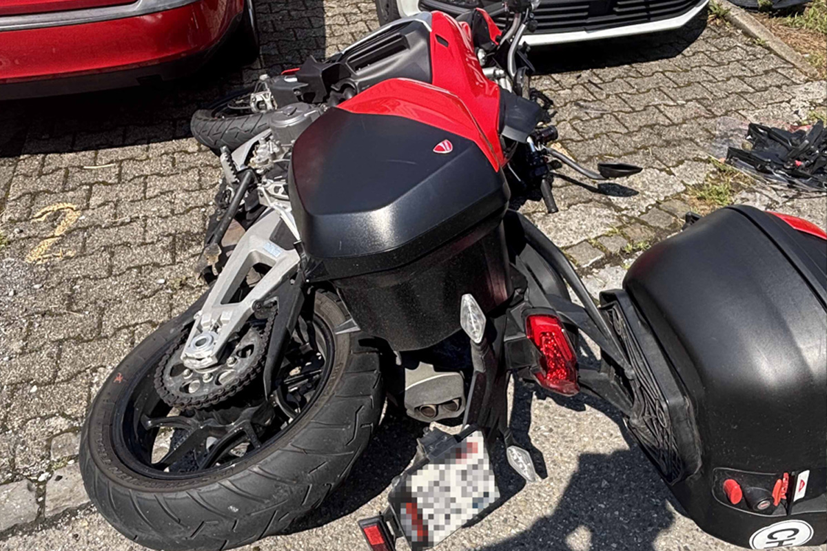 Sowohl am Motorrad wie auch am Personenwagen entstand Sachschaden.