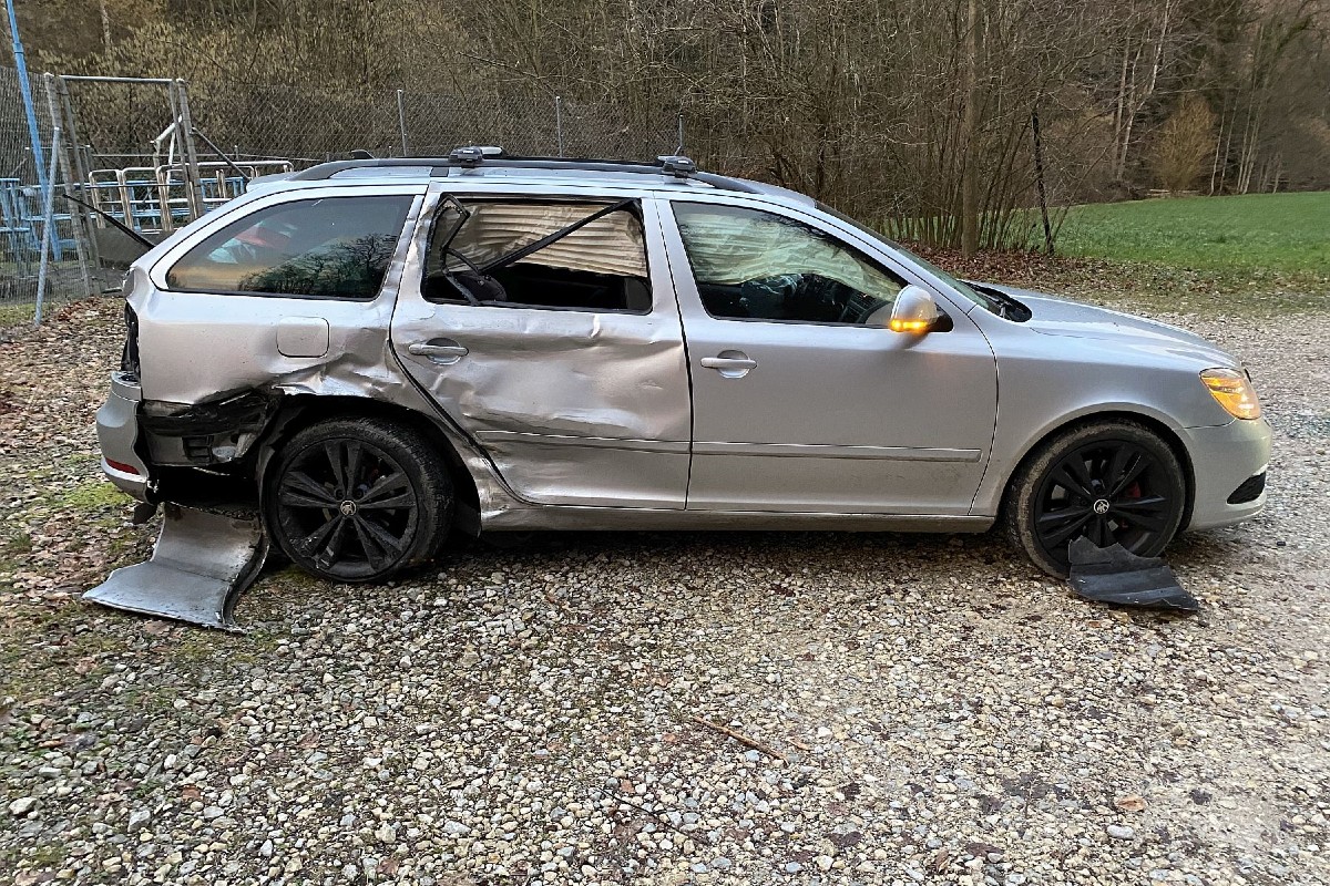 dem abbiegenden Skoda. Durch die Wucht des Aufpralles wurde der Skoda vollends auf den