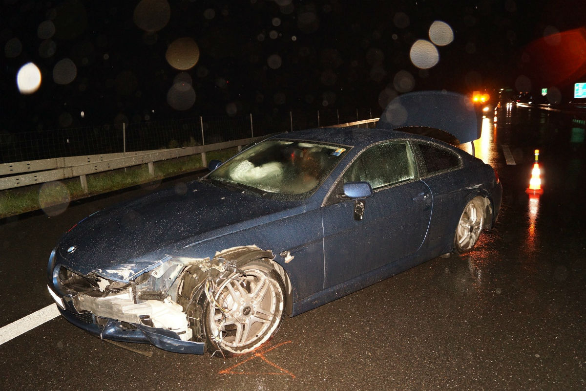 Ein Autofahrer verlor auf der Autobahn die Herrschaft über seinen BMW und prallte in die Leiteinrichtung. Er und seine Beifahrerin kamen mit dem Schrecken davon.