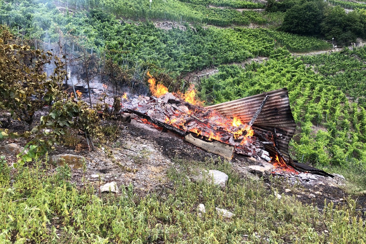 Am Mittwochabend, 15. Juli 2020 brach in einem Weinberg bei Chamoson ein Feuer aus. Beim Brand wurden ein Rebhäuschen sowie rund 80 Rebstöcke zerstört. Personen wurden dabei nicht verletzt.