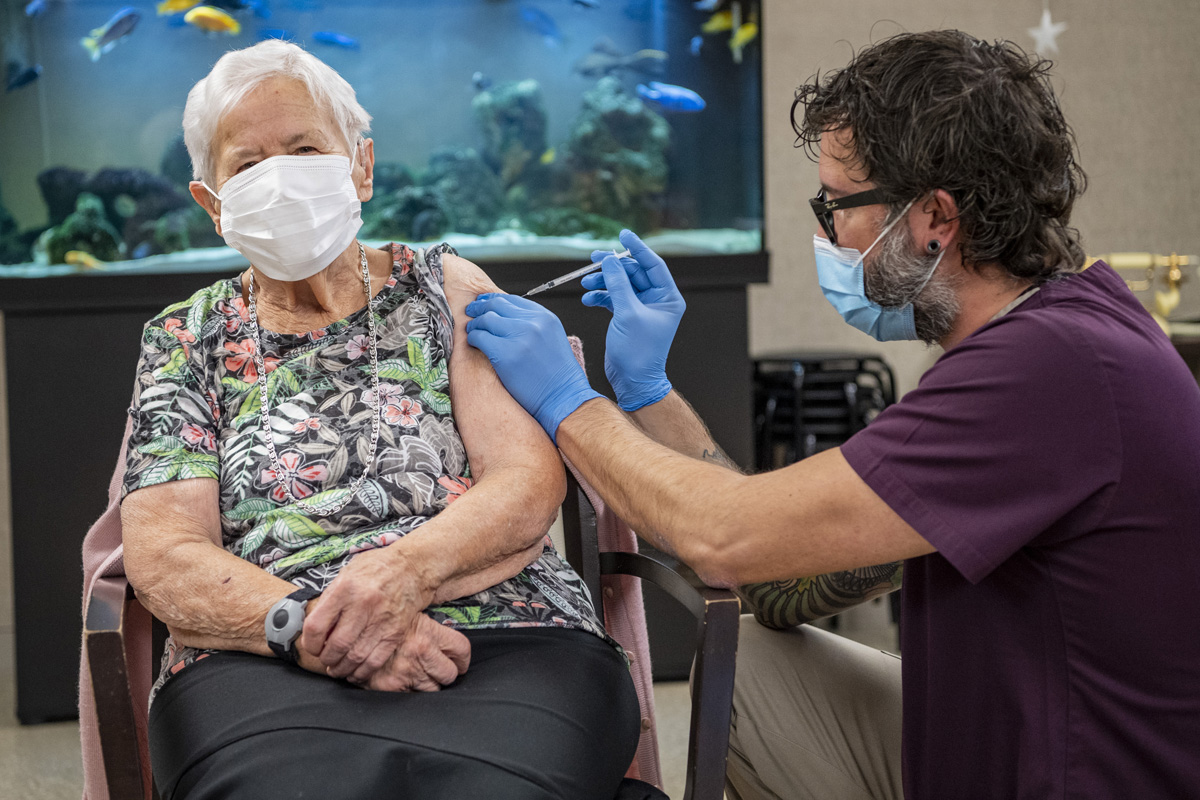 Eine über 90-jährige Bewohnerin einer Pflegeinstitution in einer Luzerner Landgemeinde wurde mit dem zugelassenen Impfstoff von Pfizer/BioNTech geimpft (Bildquelle: Kanton Luzern)