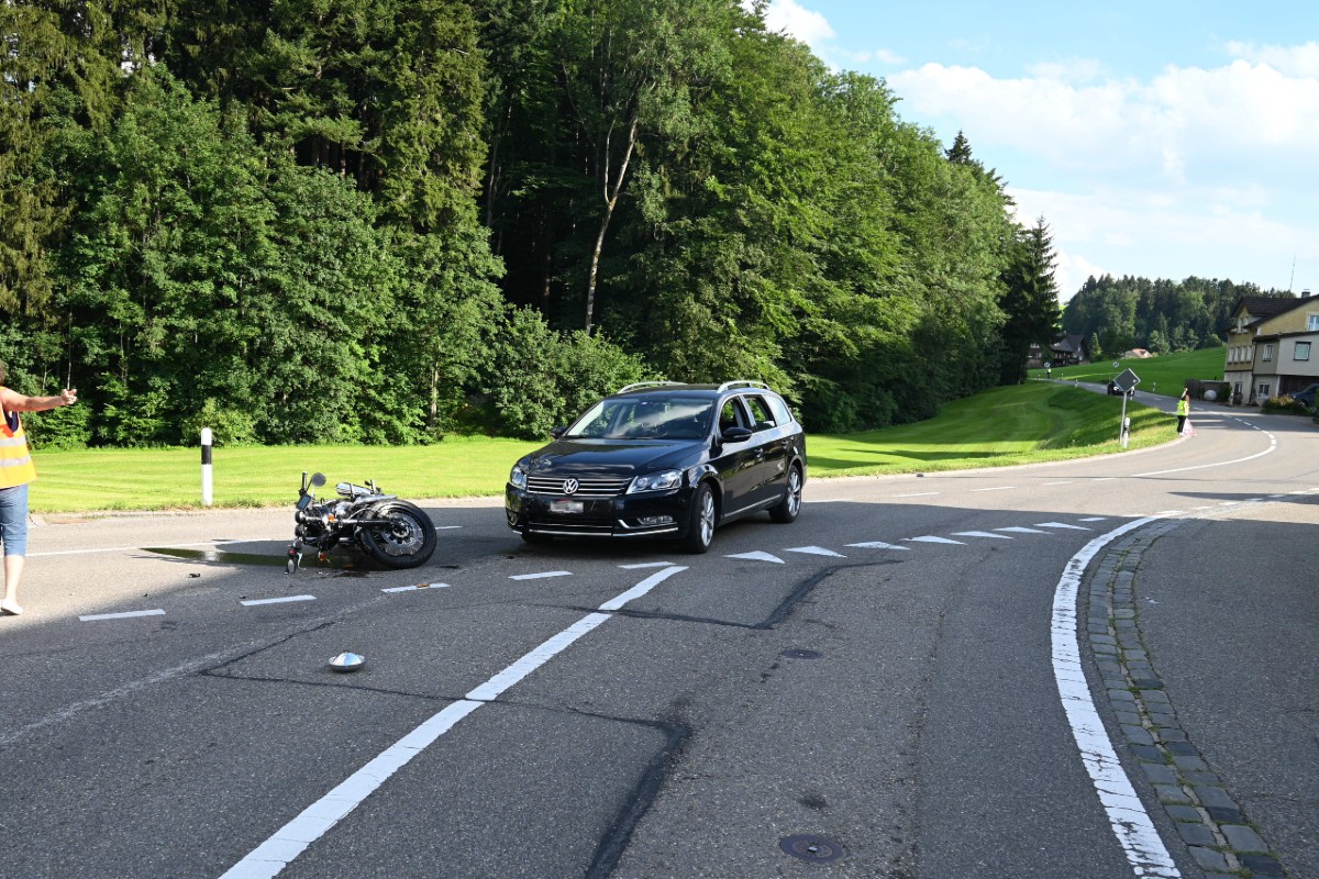 Ein 38-jährige Motorradfahrer fuhr mit seinem Motorrad auf der Flawilerstrasse von Flawil in Richtung Degersheim. Zur selben Zeit war eine 41-jährige Autofahrerin mit ihrem Auto in die entgegengesetzte Richtung unterwegs. Auf Höhe der Einmündung Flawilerstrasse/Wolfertswilerstrasse verlangsamte sie und beabsichtigte, links in die Wolfertswilerstrasse abzubiegen.