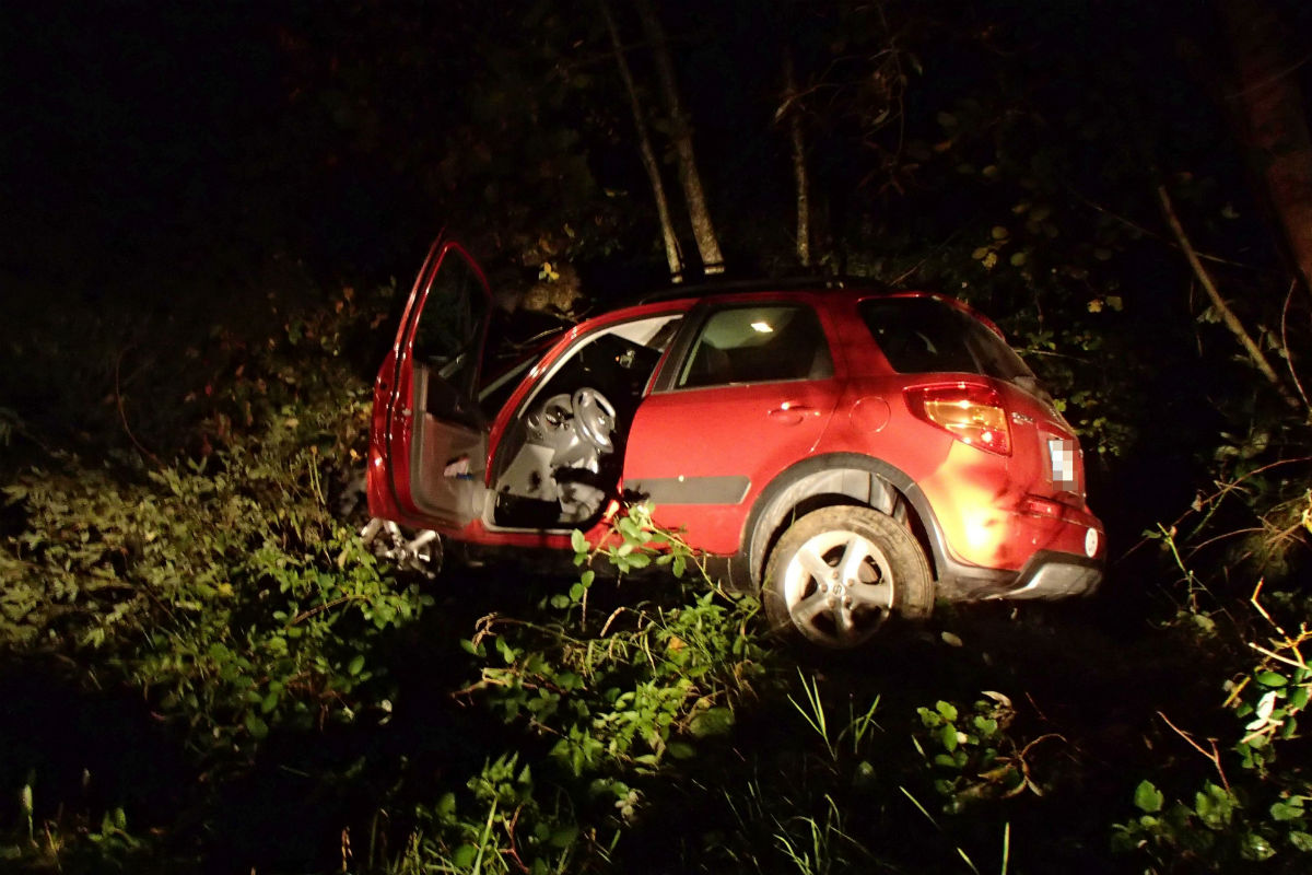 Suzuki, geriet von der Strasse und blieb schliesslich im