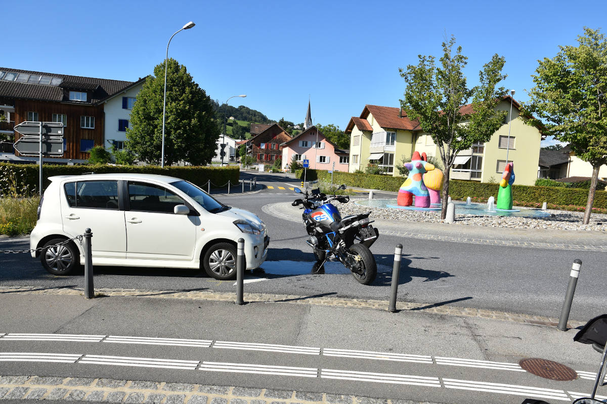 Ein Motorradfahrer fuhr gegen 17:30 Uhr auf der Essanestrasse in östliche Richtung und musste beim Kreisverkehrsplatz «Eintracht» verkehrsbedingt anhalten. Eine nachfolgende Autolenkerin übersah das Motorrad und kollidierte mit diesem. Durch die Wucht der Kollision hob es den Motorradfahrer aus dem Sitz, er wurde auf die Motorhaube geschleudert und stürzte dann auf die Fahrbahn.