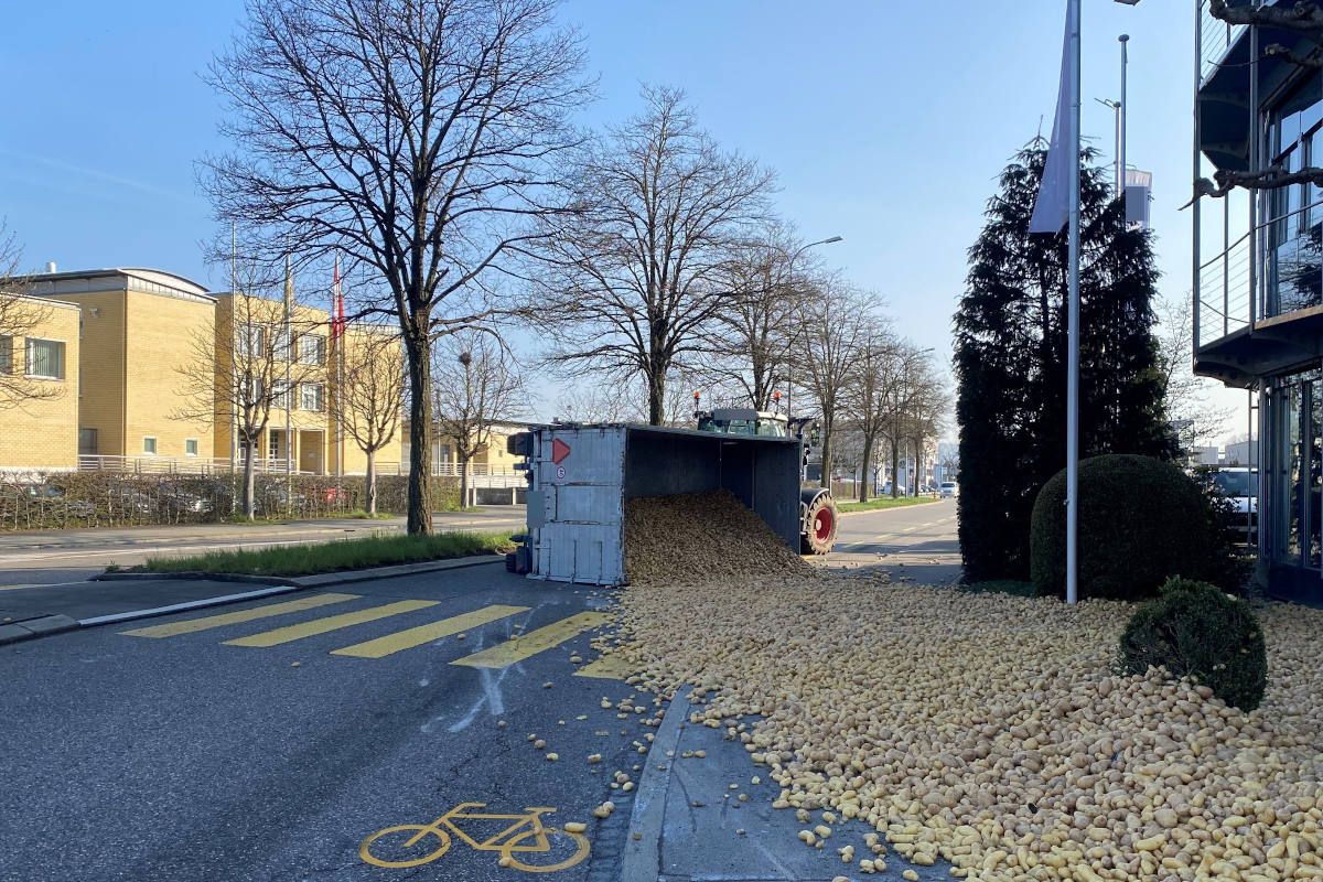 Ein Traktorfahrer verursachte am Montagmorgen verursachte in Frauenfeld einen Selbstunfall. Dabei kippte ein mit Kartoffeln beladener Anhänger. Verletzt wurde niemand. Es kam zu leichten Verkehrsbehinderungen.