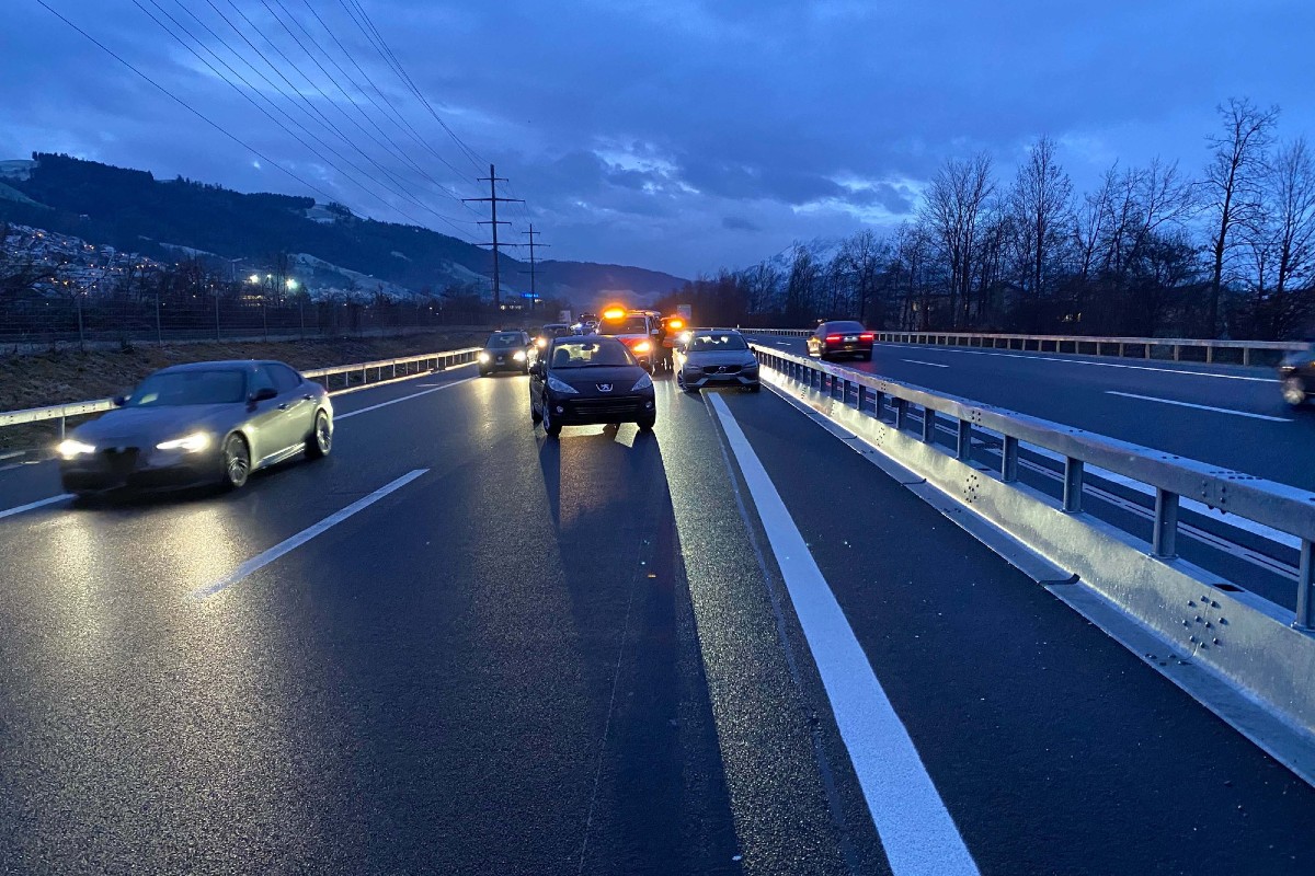 Der Unfall ereignete sich am Mittwochmorgen (18. Januar 2023), um 07:30 Uhr, auf der Autobahn A14 in Fahrtrichtung Zug/Zürich. Zwischen Gisikon und der Verzweigung Rütihof hat ein 35-jähriger Autofahrer zu spät realisiert, dass der Verkehr aufgrund des hohen Verkehrsaufkommens ins Stocken geriet und das vor ihm fahrende Auto stark bremsen musste. Beim Versuch, die drohende Kollision zu verhindern, prallte er in das Heck des Autos wie auch in die Mittelleitplanke.