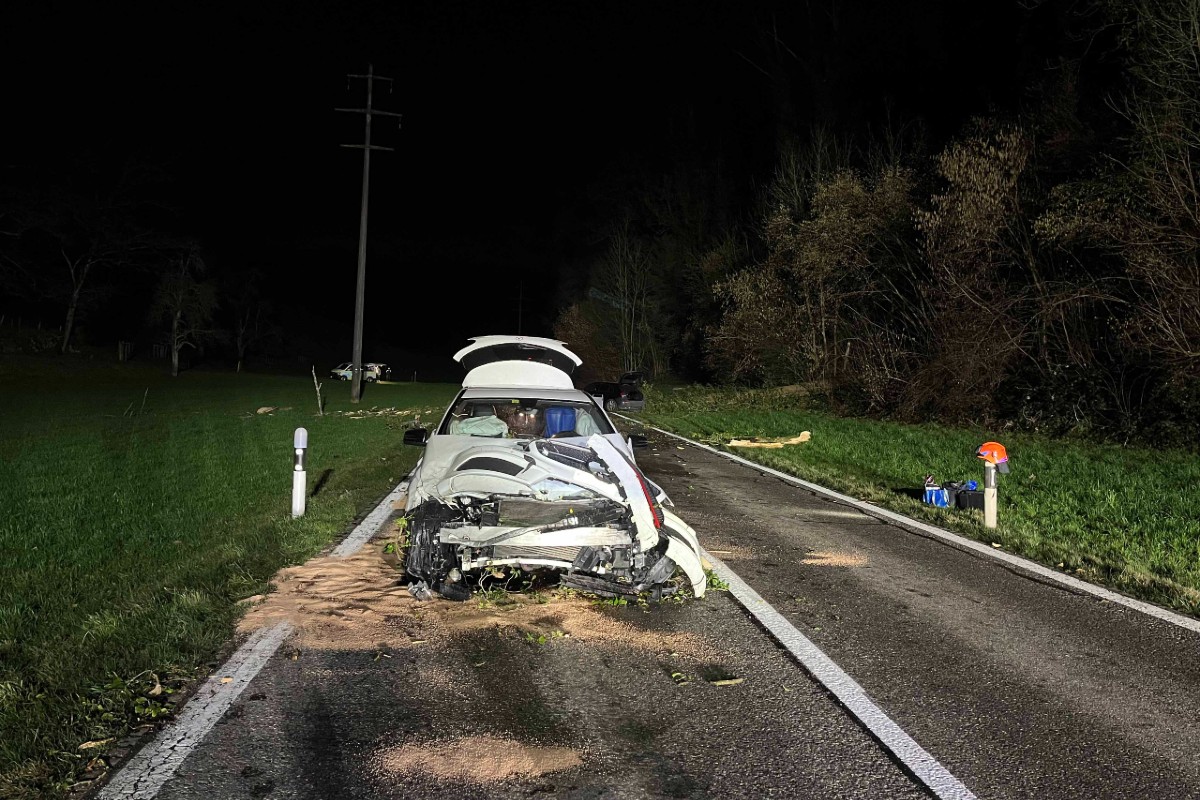 Ein Baum hat mehrere Fahrzeuge erfasst und zerstört (Kantonspolizei Aargau)