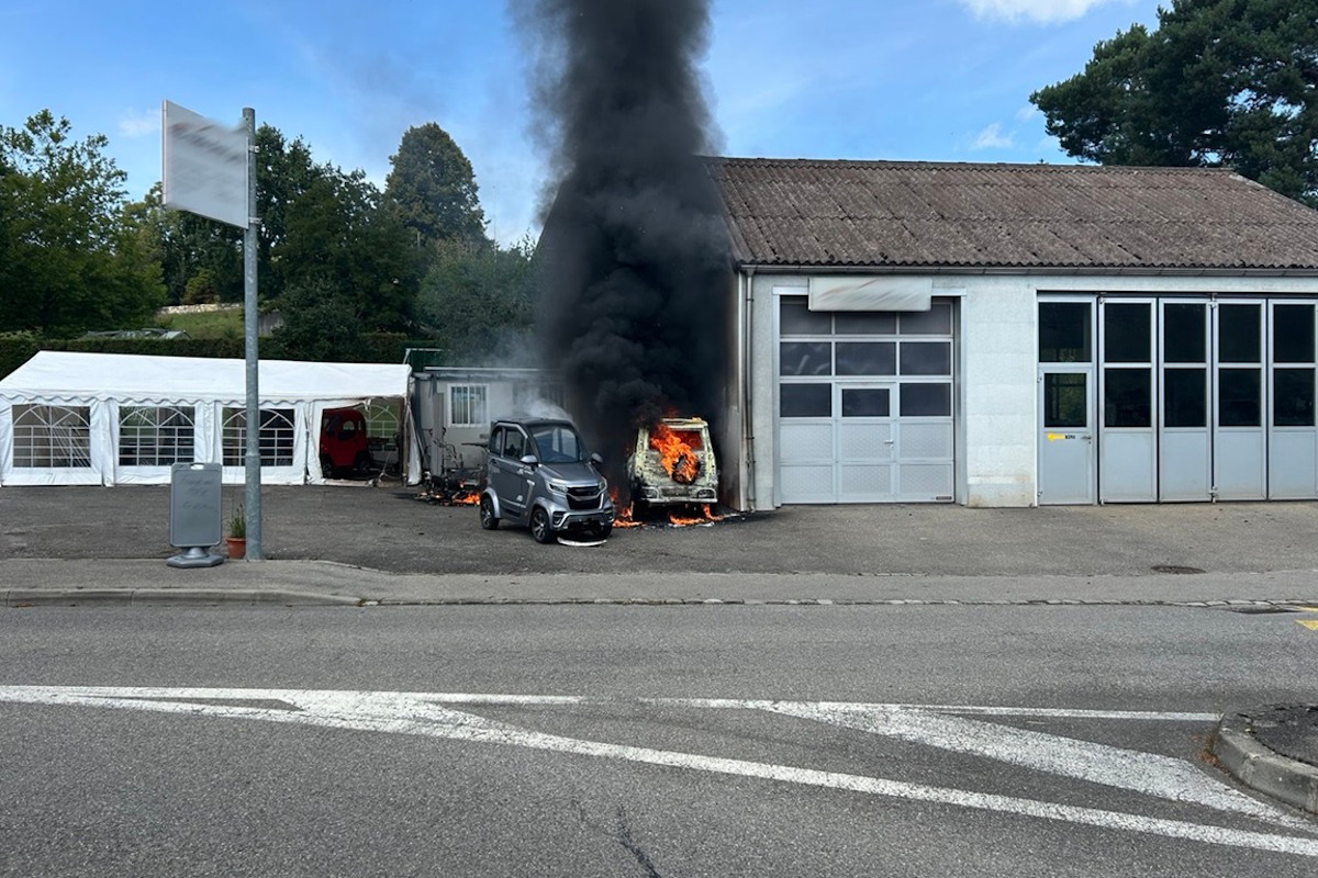 Die Feuerwehr See-Lac konnte das Feuer schnell unter Kontrolle bringen und das benachbarte Gebäude schützen. Allerdings wurden drei weitere Fahrzeuge und die Fassade des Gebäudes durch die Hitze beschädigt.