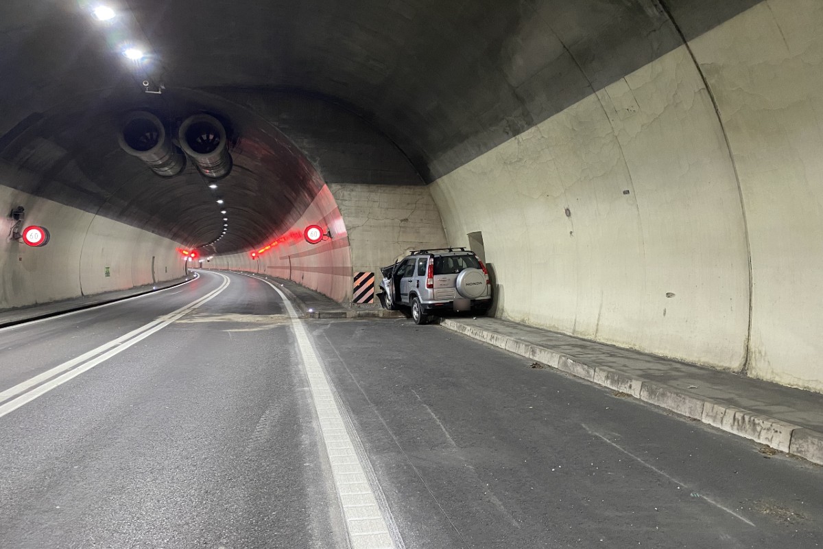 Fahrzeug nach rechts und fuhr in eine der Sicherheitsnischen des Tunnels.