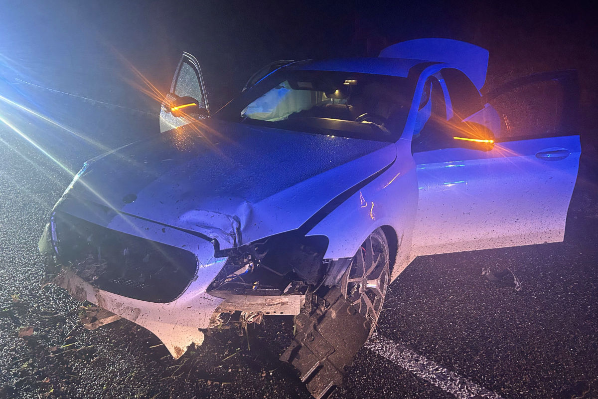 Der Mercedes-Benz prallte gegen die Böschung und dürfte danach meterweit durch die Luft geflogen sein. Quer auf der Fahrbahn und total demoliert kam der Wagen schliesslich zum Stillstand.