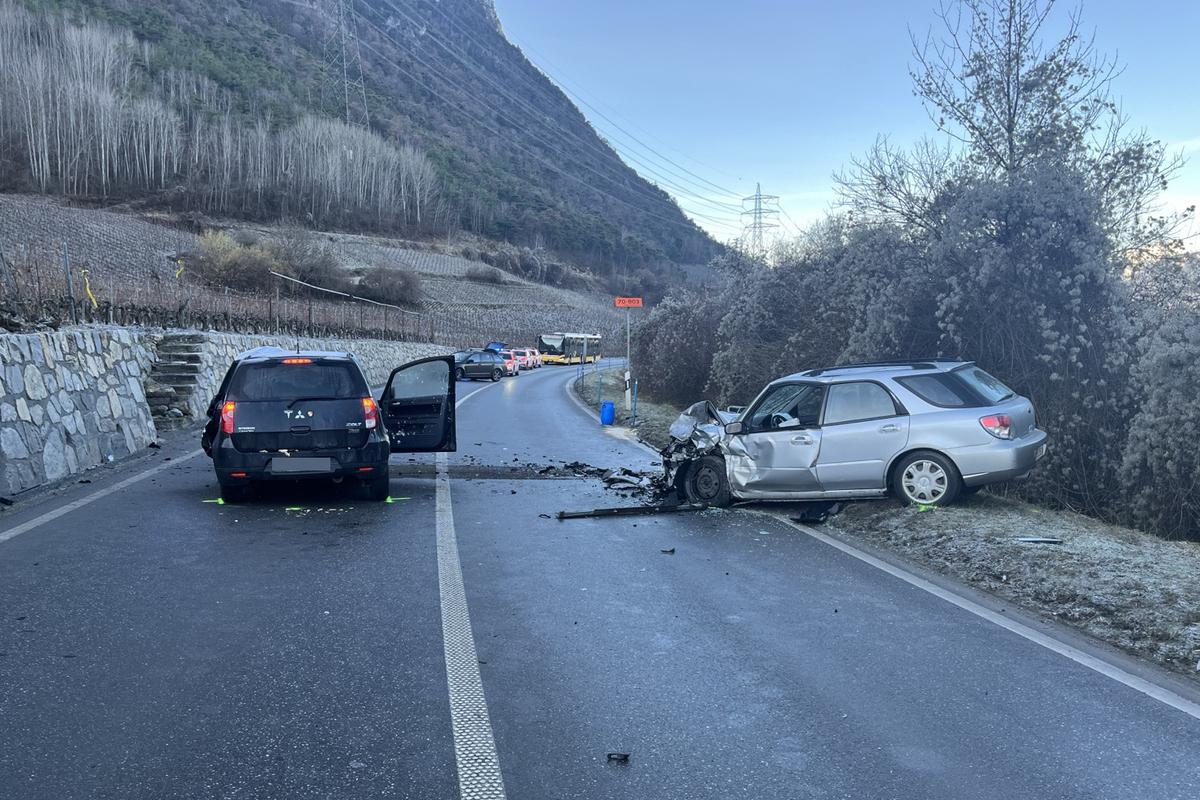 Die beiden Insassen des anderen Fahrzeugs wurden verletzt und mittels Ambulanz ins Spital von Sitten transportiert.