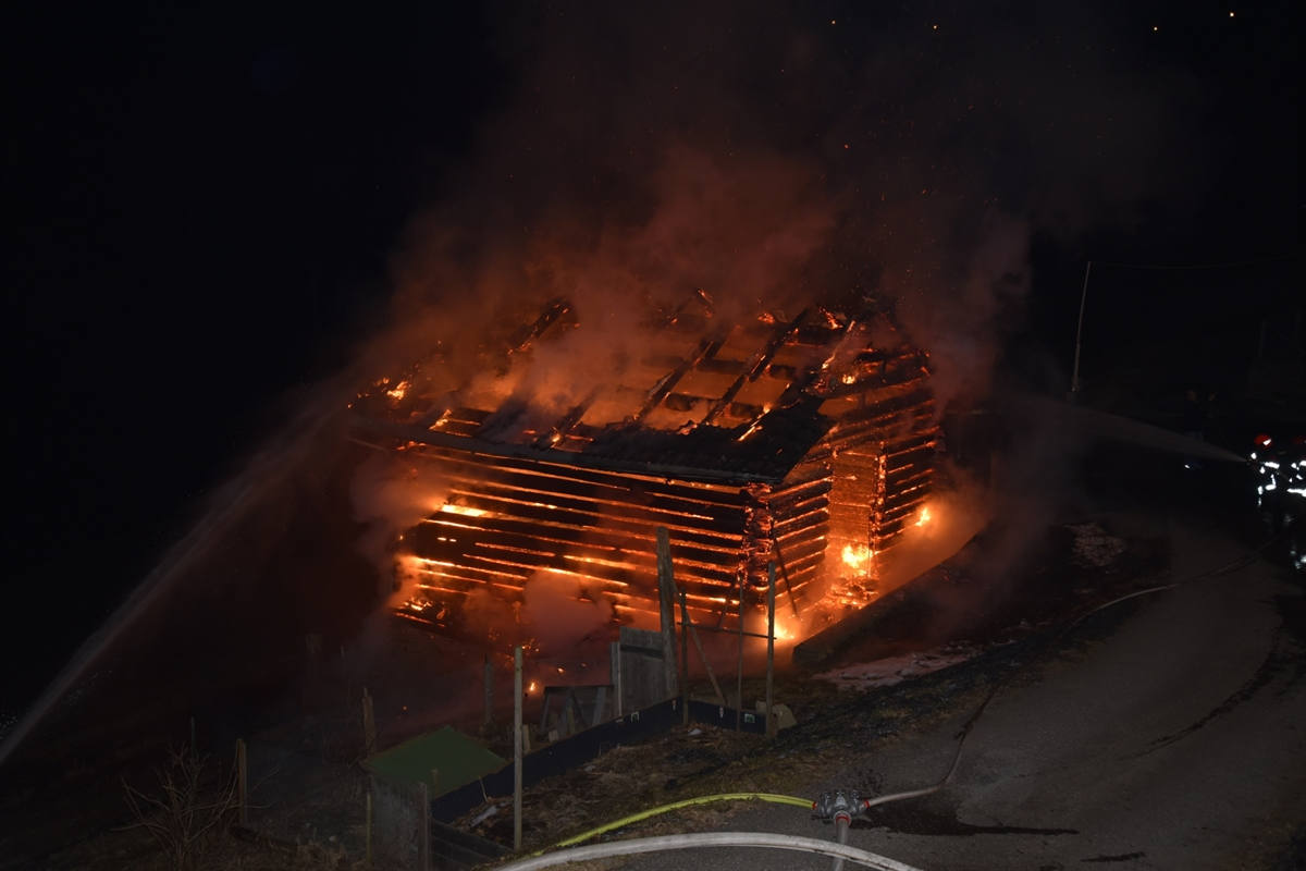 Rongellen: Stall im Vollbrand (Bildquelle: Kantonspolizei Graubünden)
