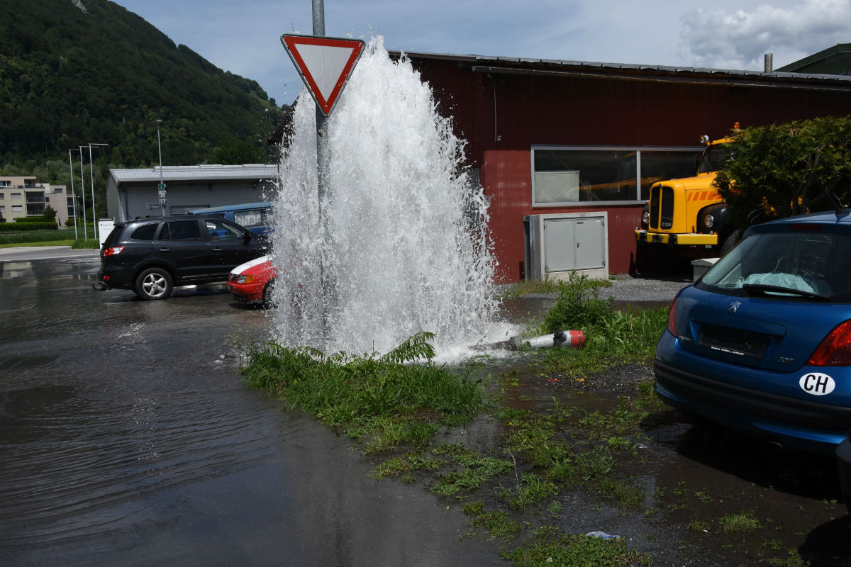 Die 43-Jährige fuhr beim Rückwärtsfahren aus einem Parkplatz in den Hydranten an der Rheinaustrasse. Der Hydrant brach und kippte um. Dadurch wurde die Wasserleitung freigelegt und es kam zu einem massiven Wasserverlust.
