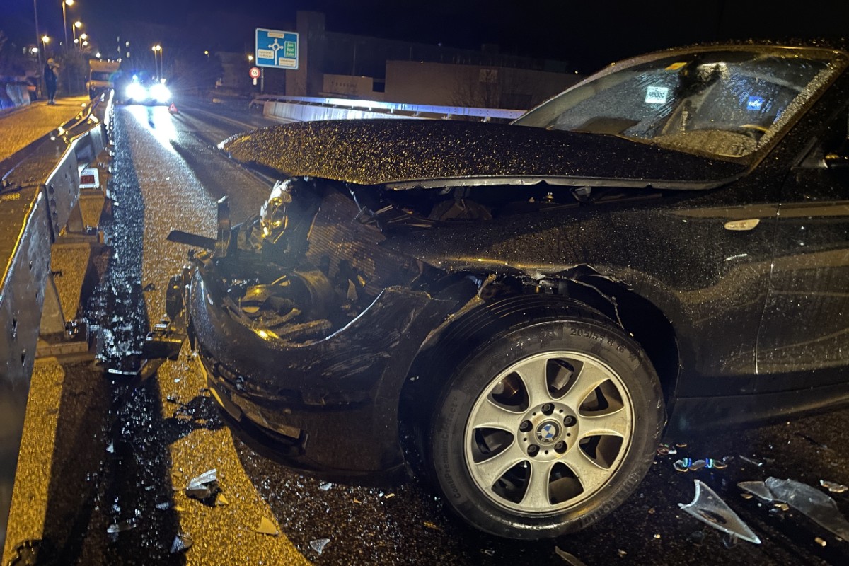 Fahrzeug und kollidierte mit der Leitplanke. Verletzt