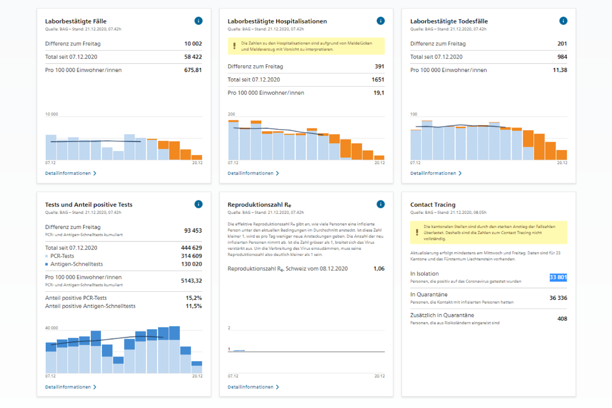Täglicher Situationsbericht zum Coronavirus (Covid-19) – Die Schweiz am 21. Dezember 2020