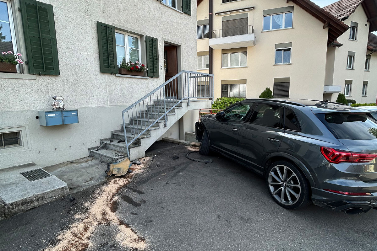 Unfall in Affeltrangen TG – Autofahrer kollidiert mit Auto und Treppe