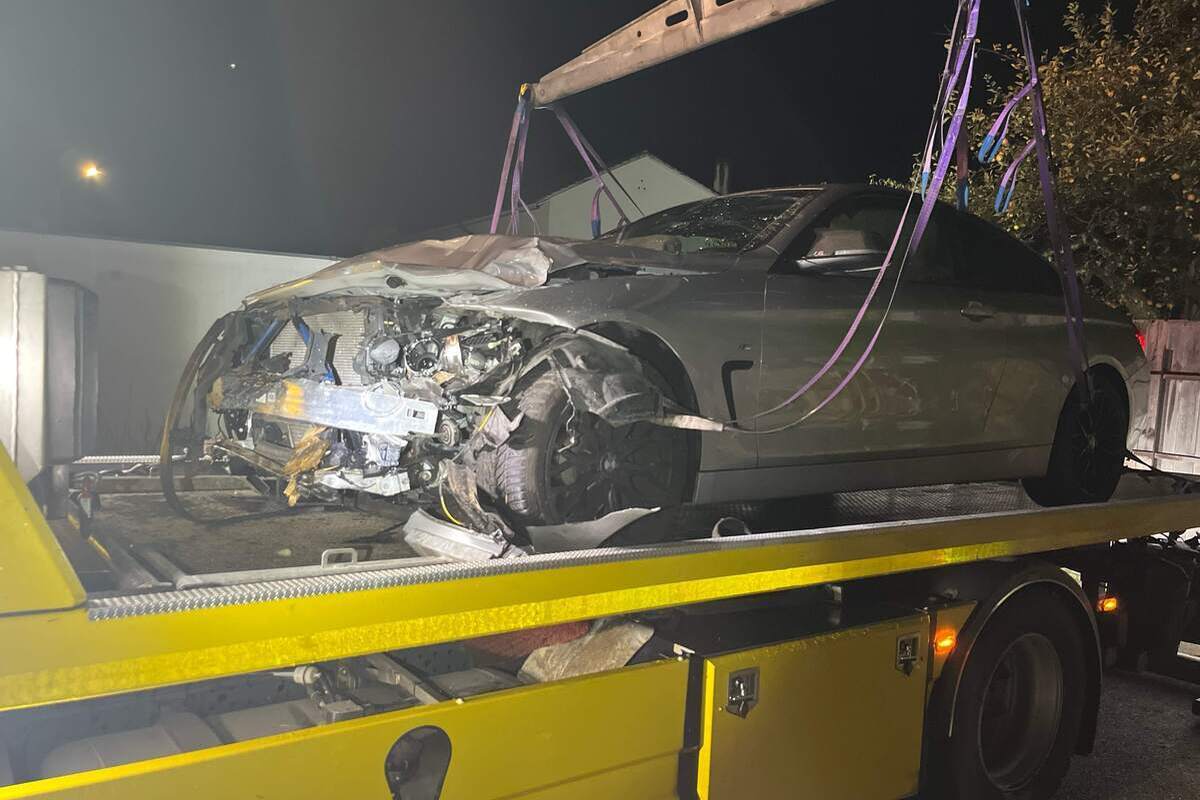 Der stark beschädigte BMW musste nach dem Unfall von einem Abschleppfahrzeug geborgen werden (Bildquelle: Kantonspolizei Solothurn)