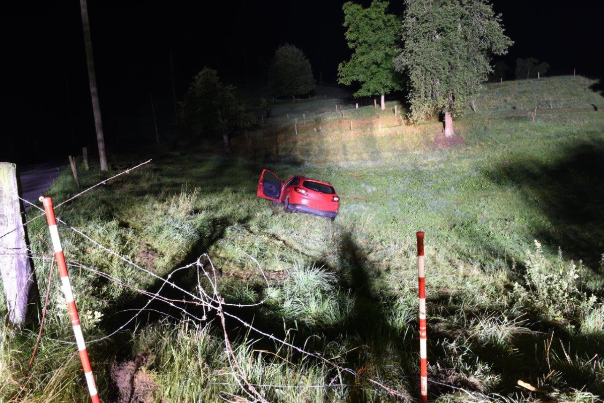In einer Kurve verlor er die Kontrolle über das Fahrzeug. Mit dem Auto durchbrach er einen Weidezaun und beschädigte eine Stromleitung. Der Fahrer war stark alkoholisiert. Ein Atemalkoholtest ergab einen Wert von 0.81mg/L (1.62 Promille). Der Mann blieb unverletzt.