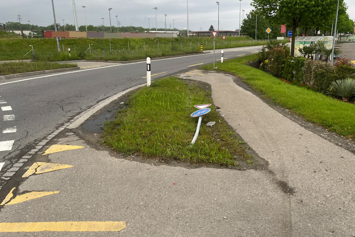 Im gleichen Zeitraum prallte ein Auto beim Verlassen des Kreisels auf der Amriswilerstrasse in Richtung Zentrum in eine Verkehrstafel. Aufgrund der Fahrzeugteile am Unfallort, handelt es sich beim Verursacherfahrzeug um einen Skoda.
