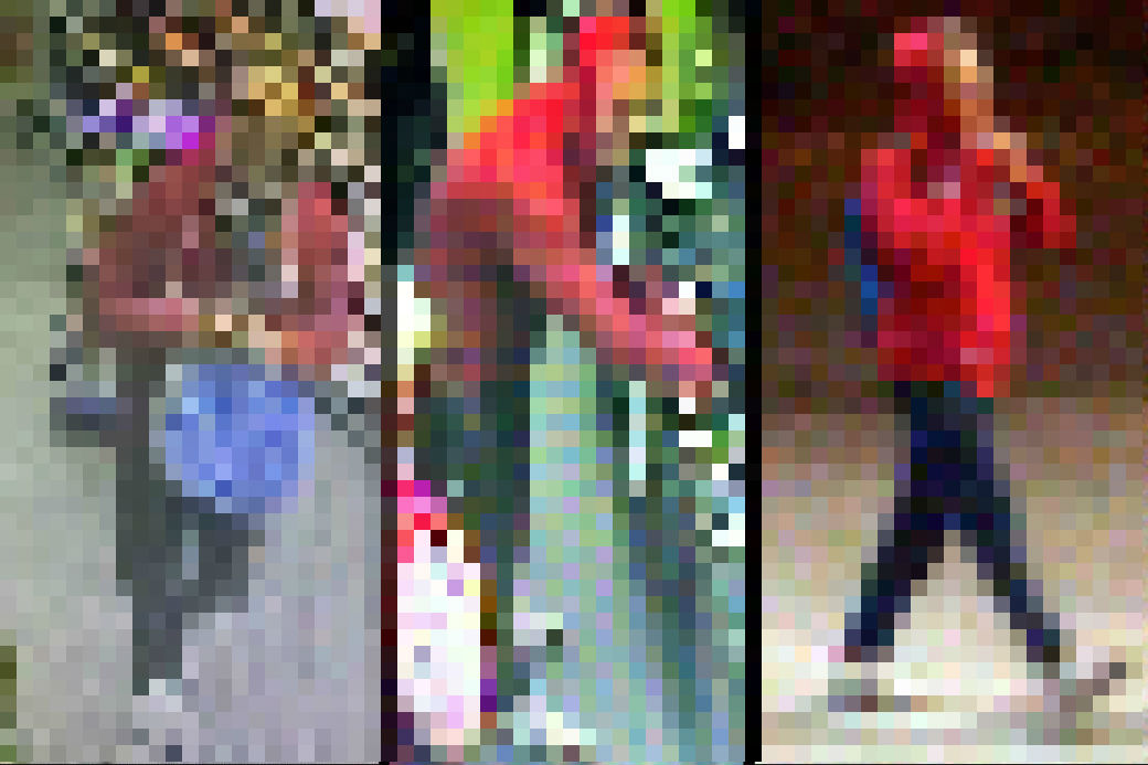 Signalement Täter: Ca 190cm gross, roter Pullover, schwarze Trainerhose, weisse Schuhe und Brille.